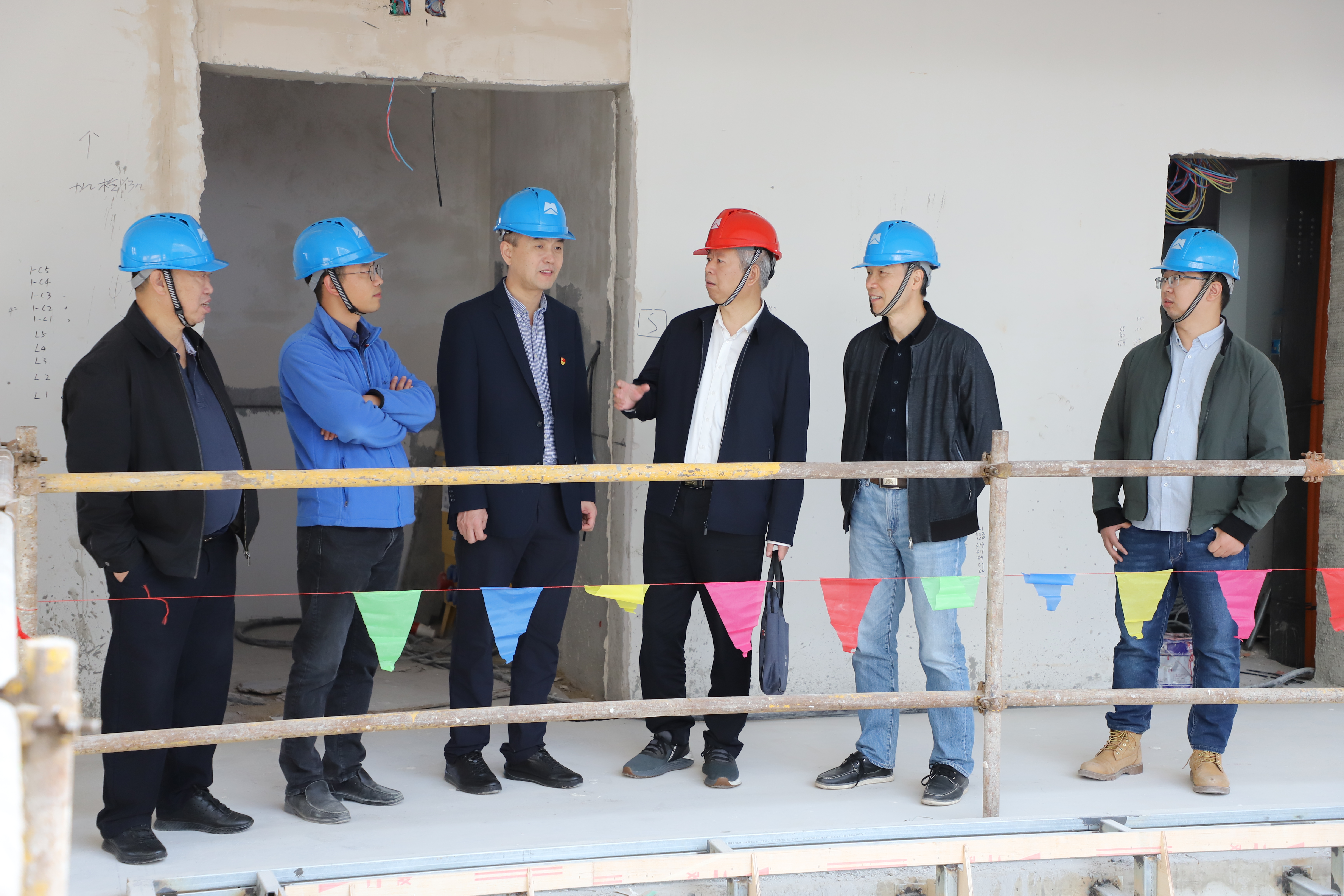 在中国共产党第二十次代表大会胜利召开期间,10月20日下午,龙8平台官方网站党委副书记、董事张钰深入浙数文化产业园项目一线检查指导安全生产工作,安全生产部、第二工程建设公司有关负责同志共同前往。